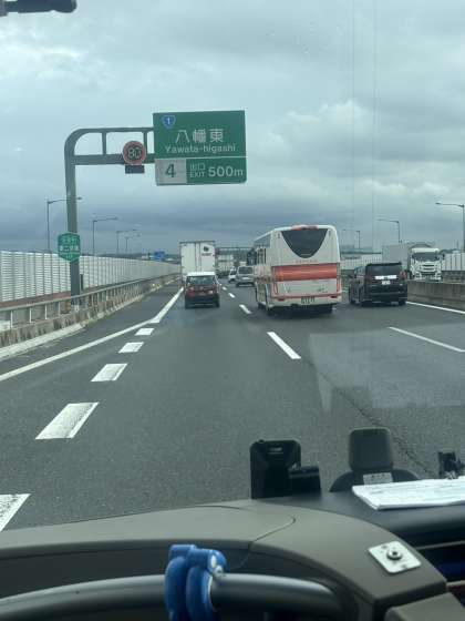 17時現在、バスは第二京阪道路を走行中です。順調に進んでおります。