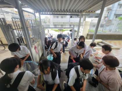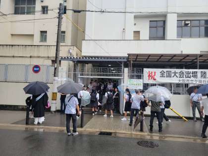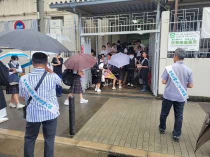 保護司会の方々と更生保護女子会の方々にお越しいただき、本日の登校時に、社会を明るくする運動を実施しました。