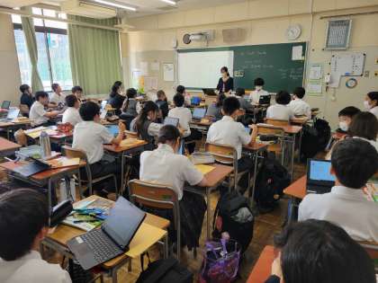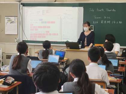 英語の音読の練習をしています。タブレットで録音してオンラインで提出します。すると発音や抑揚が自動で採点され本人に返されます。こんな便利な使い方もあるんですねー。
