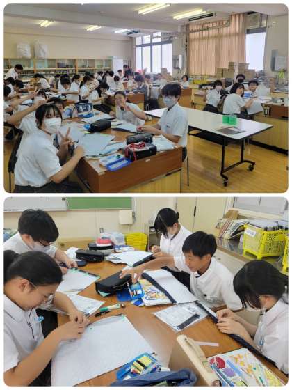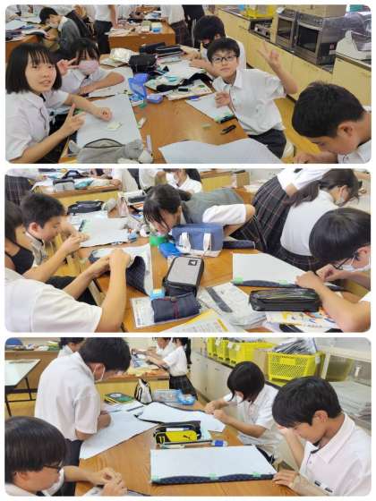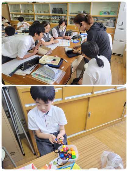 裁縫に取り組んでいます。先生や友だちに教えてもらいながら作業しています。