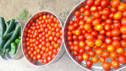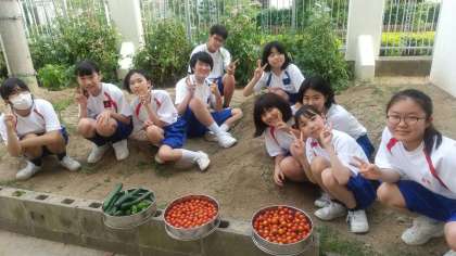 本日は、ミニトマト、キュウリ、ピーマンを収穫しました。