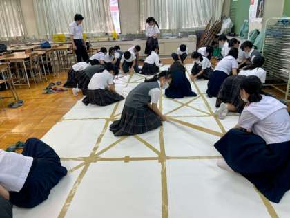 音楽コンクールの台紙を作成しています。生徒達だけで作り上げることができました。夏休みから下書きをしていきます。
