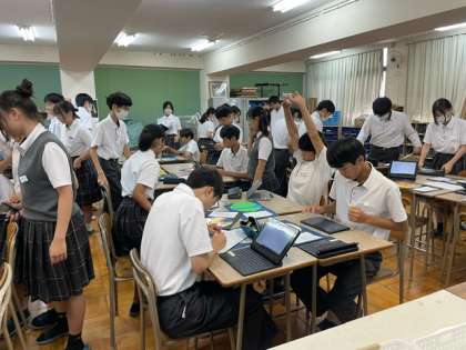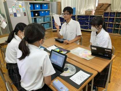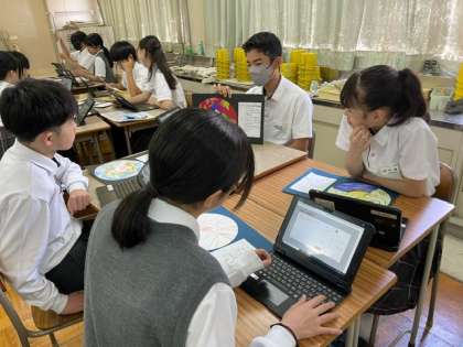 5組の様子です。形や色に込めた思いをしっかり発表できていました。ふり返りでは、「みんなの作品に対する思いが聞けてよかった」「作品への思いがすごかった」などの感想がありました。