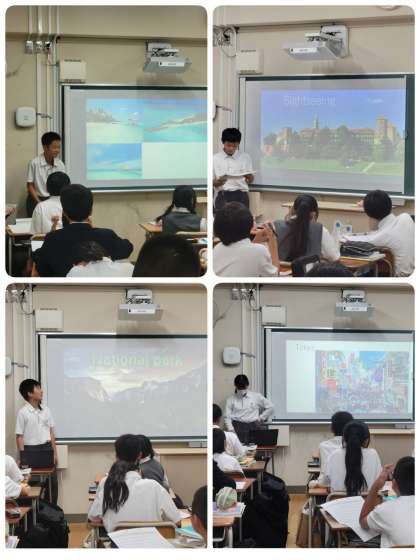 行きたい場所をパワーポイントにまとめて、英語でプレゼンテーションしています。