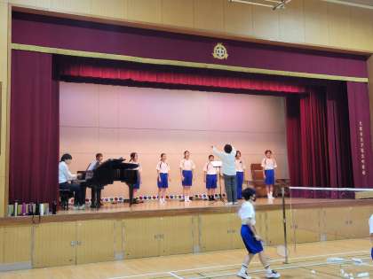 明日のコンクール本番に向けて、体育館でも練習しました。居合わせたバドミントン部からも大きな拍手が起こりました。