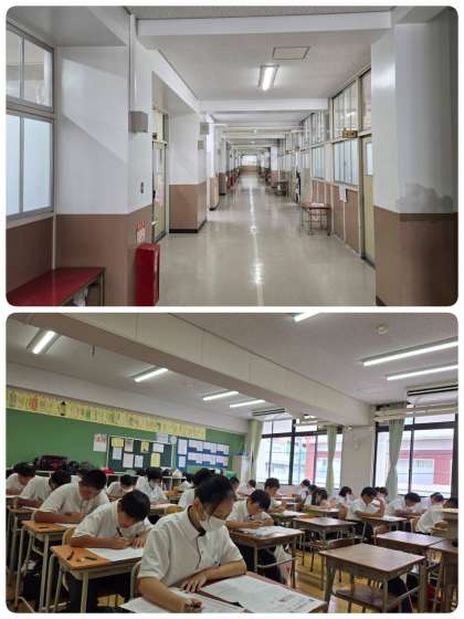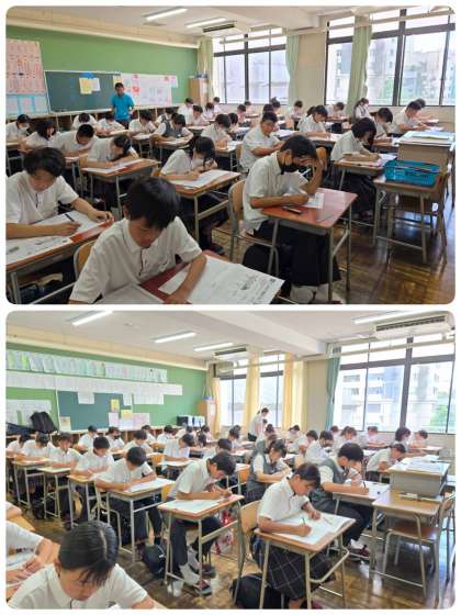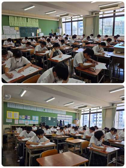 1年生は、英語、理科、社会、国語、数学の順に課題テストを受けています。