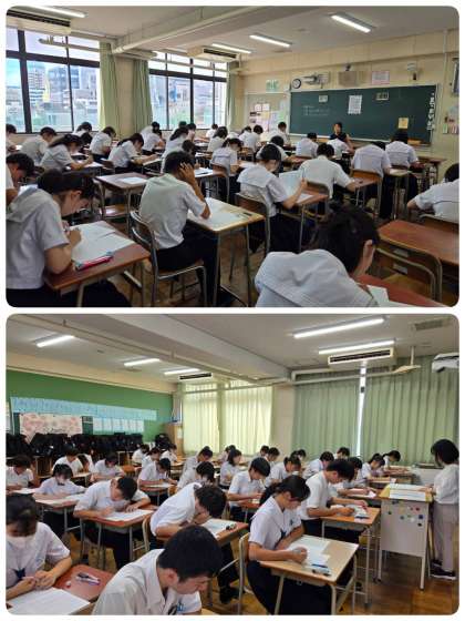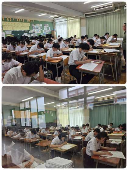 3年生は、英語、理科、社会、国語、数学の順に実力テストを受けました。