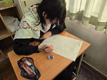 テスト形式のワークシートに取り組み、復習をしています。明日のチャレンジテストにも役立ちそうです。