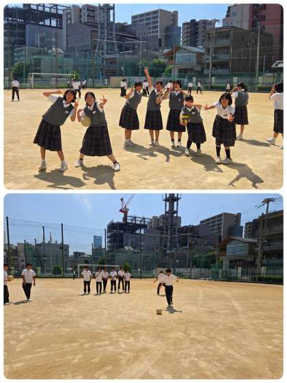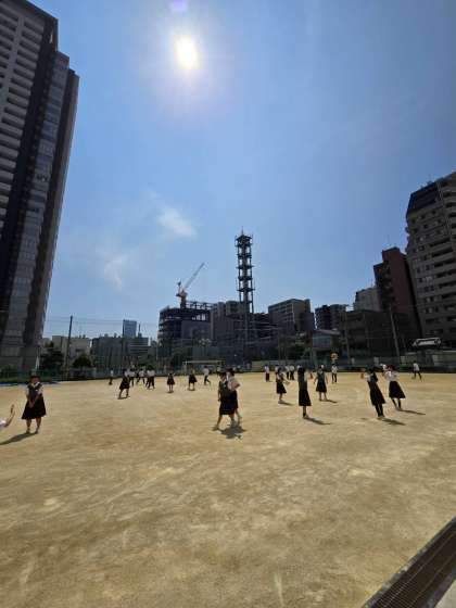 日射しは暑いですが、外で元気に遊んでいる人たちもいます。