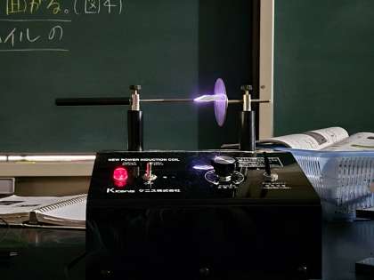 電気の学習で放電について学習しています。実際の放電を見ると迫力があります。