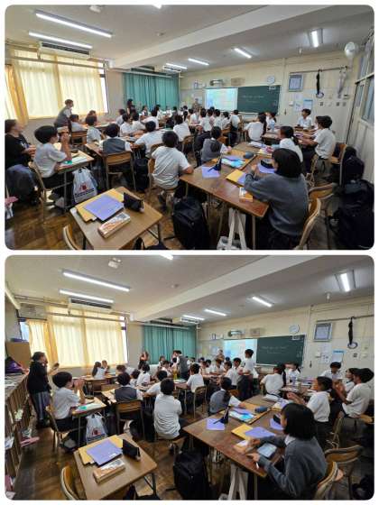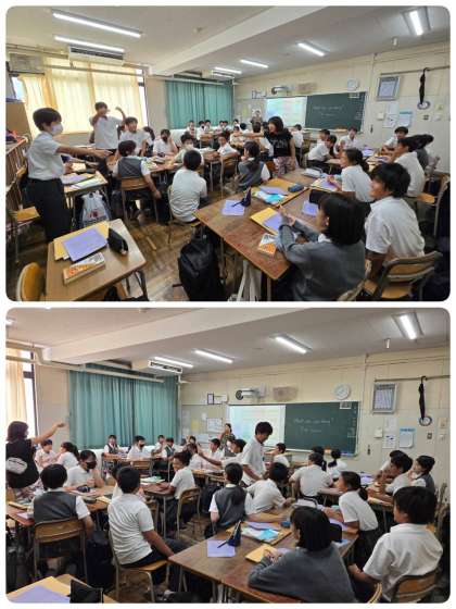 C-NETの先生と一緒に、What are you doing?を使ったゲームをしています。写真では伝わりにくいのですが、とても盛り上がっています。