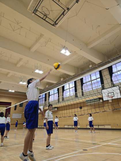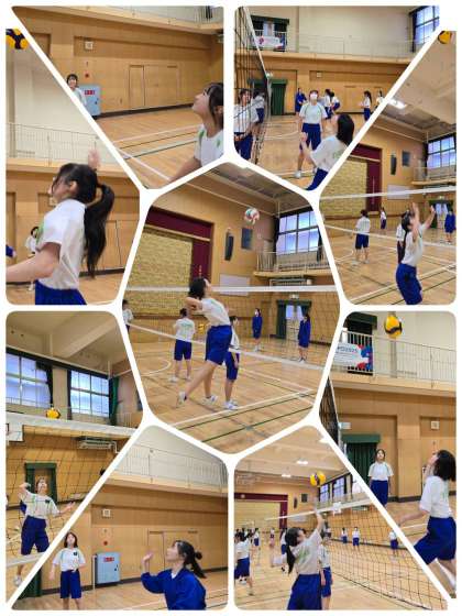 バレーボールを学習しています。スパイクの練習をしている様子です。