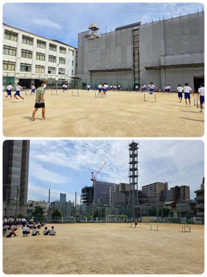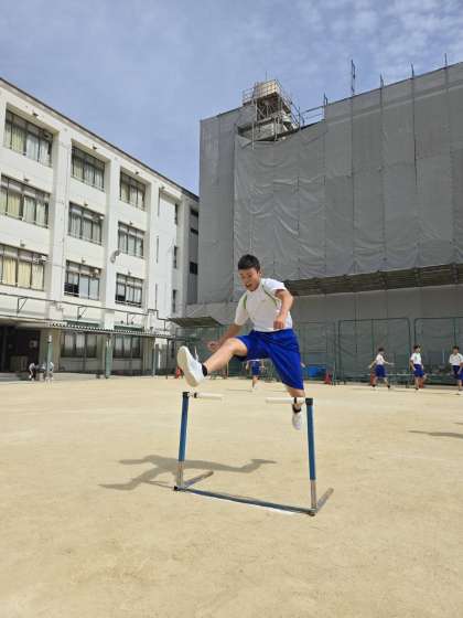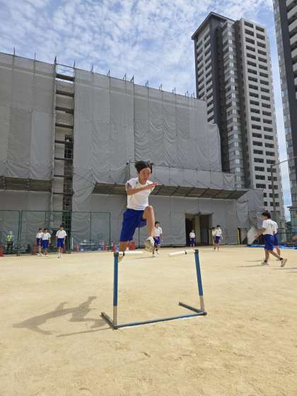 ハードルを学習中です。リード足の使い方を意識してとんでいます。