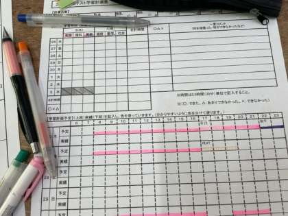 中間テスト1週間前となったので、テストまでの計画をたてました。この1週間で過去問や復習を重点的に行って、苦手分野をしっかり克服しましょう。また、睡眠や休憩をしっかり取ることで、集中力を高めることも忘れずに。自分を信じて、最後まで全力を尽くしましょう!