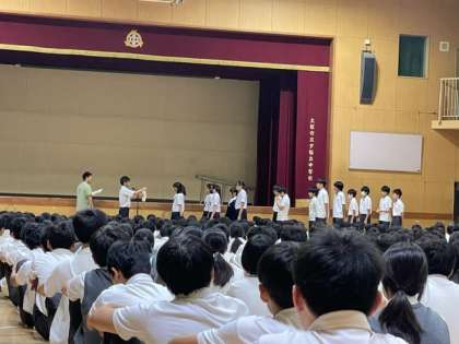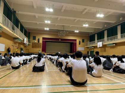 明日から10月です。前半戦が終了しました。3日と4日は中間テストです。残り時間、できる準備をしっかりしましょう。校則が一部見直され、1週間がたちました。人間は集団で生活すると、ある一定のルールがないと安全に楽しく生活することができません。自覚をもって時と場所、状況を考えて行動していきましょう。最後にバドミントン部の表彰がありました。