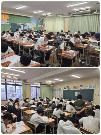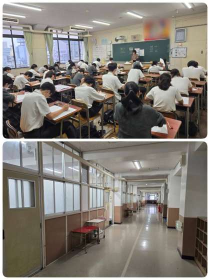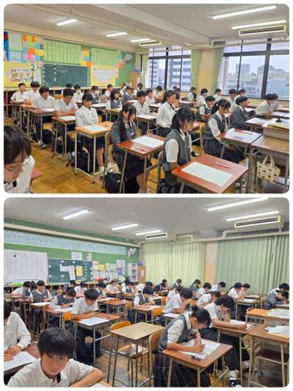 2年生は英語と理科と美術のテストを受けています。みなさんがんばっています。