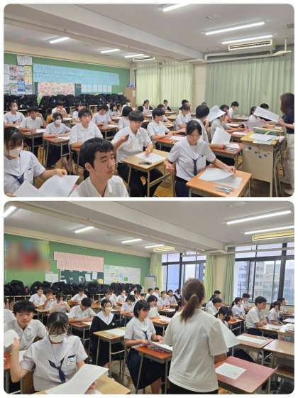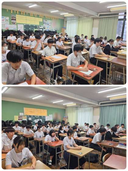 3年生も英語と理科と技術家庭科のテストを受けています。テスト前はみなさん少し緊張した面持ちです。
