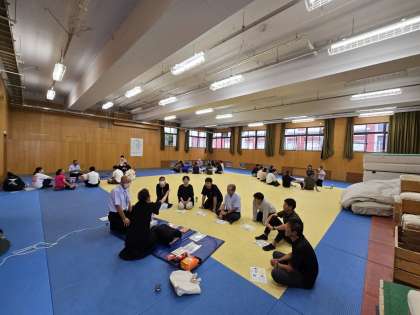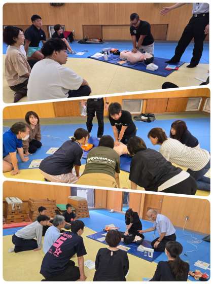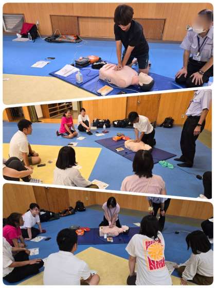 午後の時間に消防振興協会の方々にお越しいただき、教員の普通救命講習を行いました。