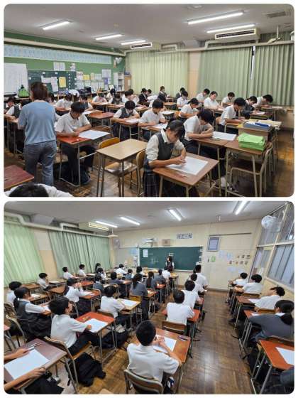 2年生も、国語、数学、社会のテストを受けています。うっかりミスには十分に気をつけて欲しいです。