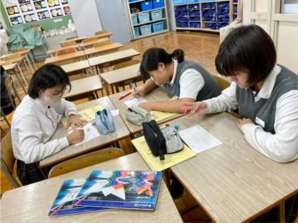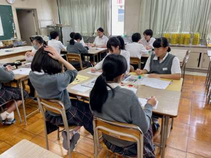 事業所別の会議をしました。代表者を決め、中学校から各事業所までの道を地図で確認し、最後に自己紹介カードを記入しました。