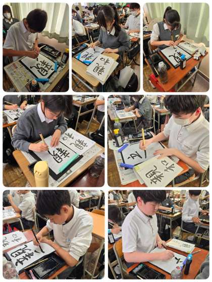 書道に取り組んでいます。「親和」の作品を仕上げています。