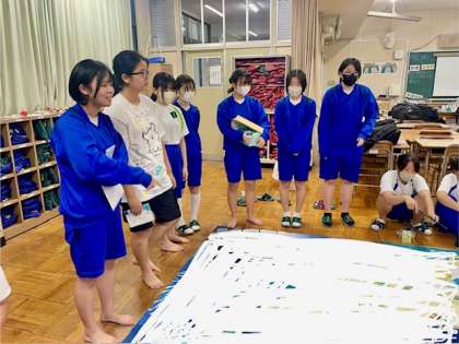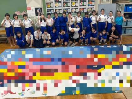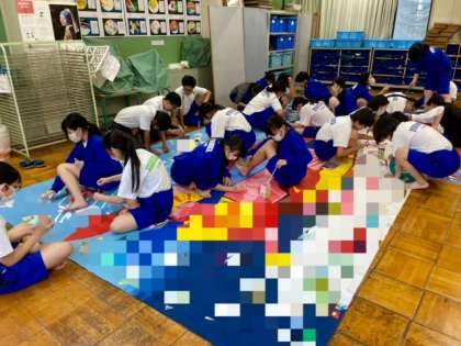3年生を中心にみんなで協力して進めてきた背景画が完成しました。アイデアから色塗りまですべて自分達で仕上げたことで、より一層達成感を感じることができました。今年は特に時間がない中で計画的に進め、全員で協力できました。文化祭当日に披露されますので、ぜひご覧ください。