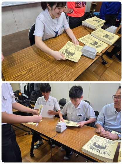 文化祭委員と音コン委員のみんなで協力して、文化祭のプログラムの製本をしました。