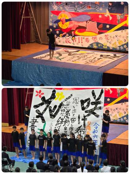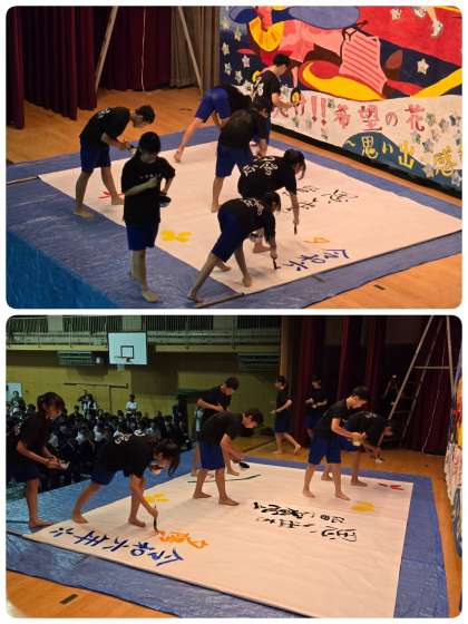 書道部のパフォーマンスです。