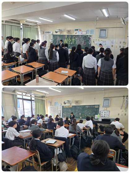 午後からの本番に向け、最後の練習をしています。各クラス、委員の生徒を中心に話し合って、工夫しながら練習しています。