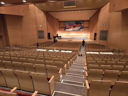 午前中から会場の準備が進んでいます。いよいよ音楽コンクールが始まります。