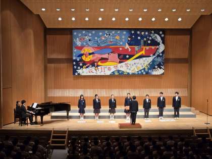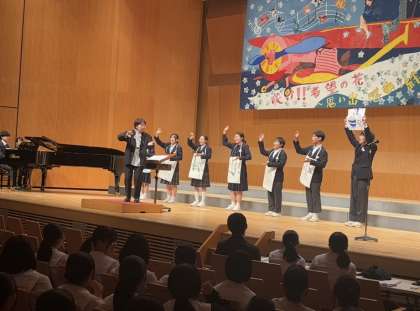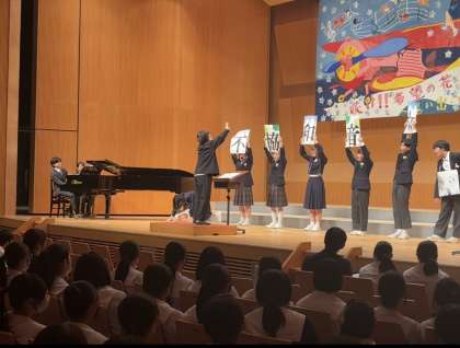 合唱部の発表の様子です。バラエティーに富んだ舞台に、観客のみなさんが引き込まれています。