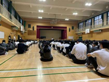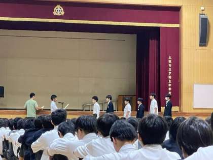 先週の木、金曜の文化祭おつかれさまでした。とても心に残る素晴らしいものがありました。次は体育大会です。行事が続くと気持ちがたかぶって、普段の生活がこれぐらいでもいいか、などとなってしまうことがあります。そんな時こそ当たり前を当たり前にしていくことが大切ですね。最後にバドミントン部の表彰がありました。