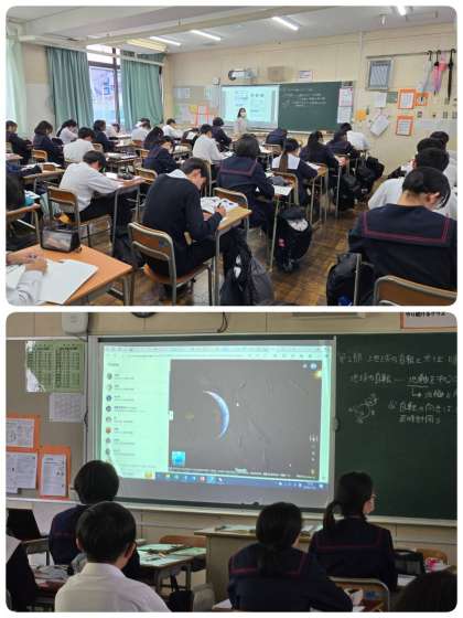 地球の自転について学習しています。ICT機器を使って説明することで、理解しやすくなっています。