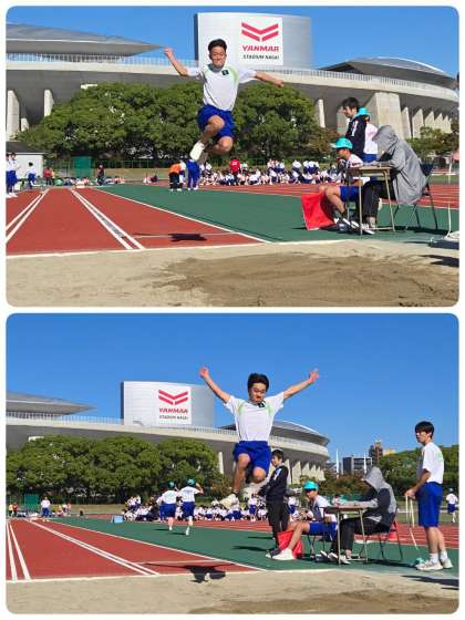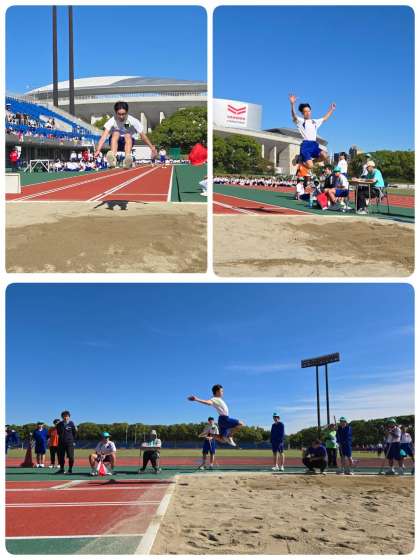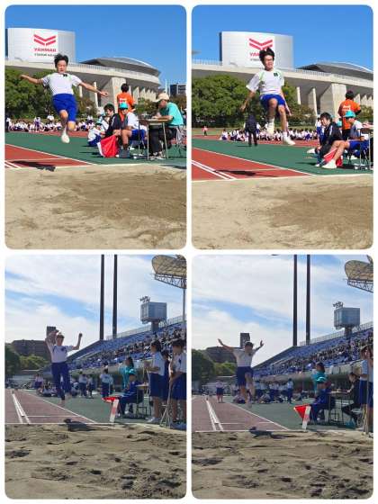 走り幅跳びの様子です。背中に羽がはえているのかと思うくらい跳んでます。