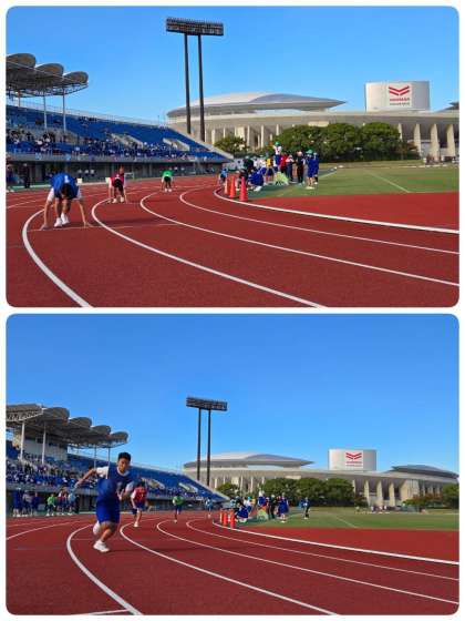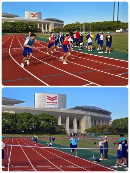 男子4×200mリレーの3年生の様子です。これが最後の種目です。応援も最高潮に達しています。