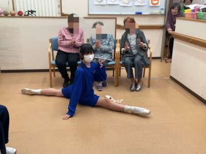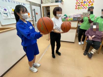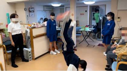 デイサービスわくわくの様子です。レクリエーションの時間です。中学生が特技を披露していました。利用者の方にとても喜んでいただきました。