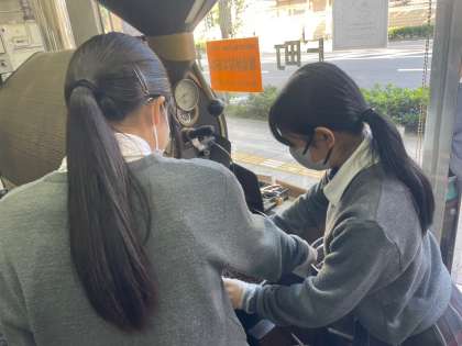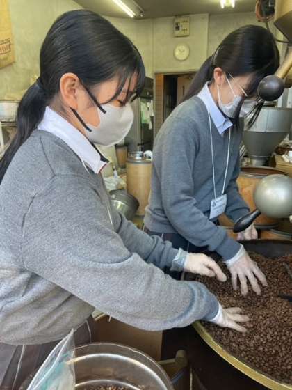 上町珈琲の様子です。珈琲の香りに包まれながら作業をしています。