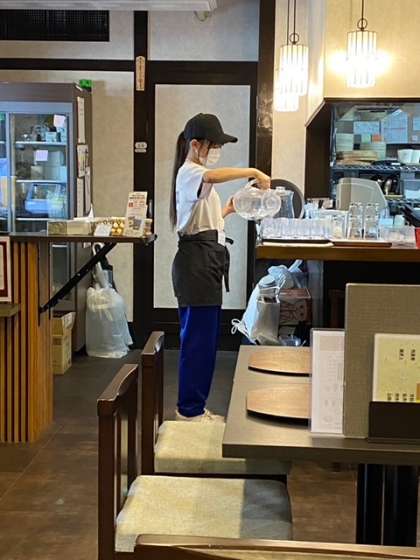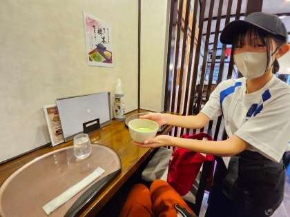 四天王寺茶屋の様子です。素敵な笑顔で接客しています。