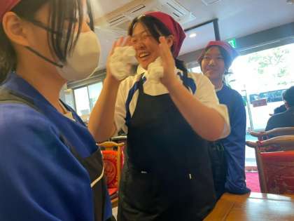 基蘭の様子です。料理を運んだり掃除をしたりしました。
