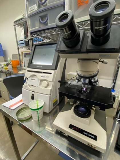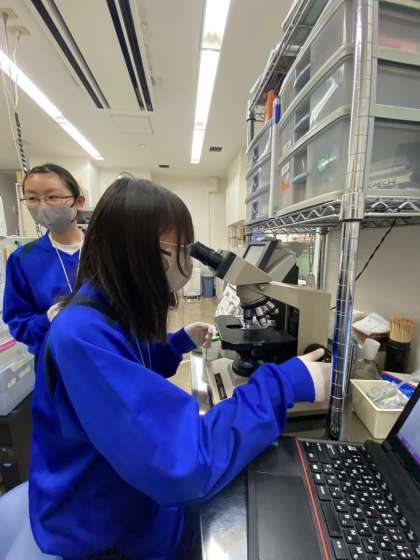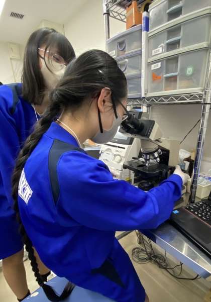 早石病院の様子です。顕微鏡で細胞を見ています。