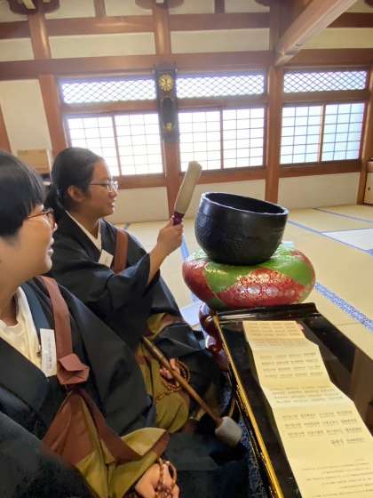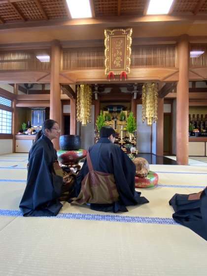 一心寺の様子です。読経をしながらの木魚をたたく経験は貴重でした。