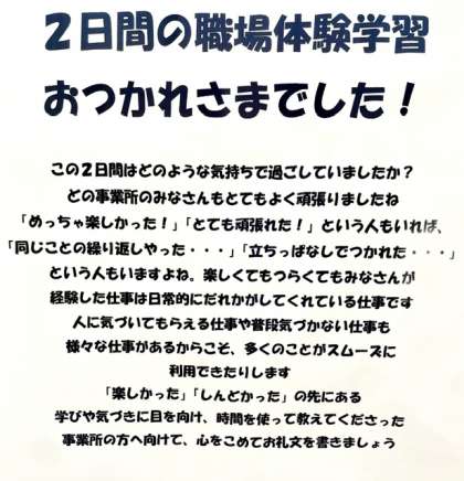 体験後は学校に終了報告に来ました。みなさん充実した表情です。おつかれさまでした。