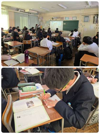 複数の情報を関連づけて考えをまてめるを学習しています。2つの資料を読んで、ポスターを作る準備をしています。