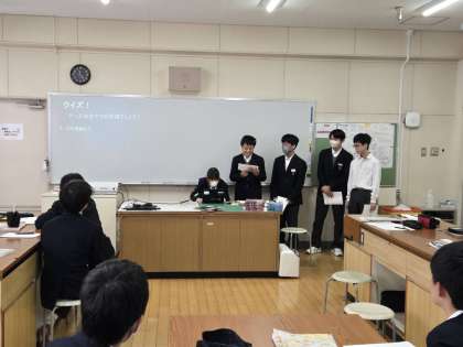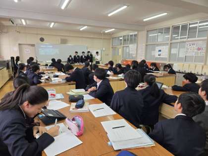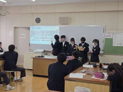食について調べたことをまとめて、発表しています。どの班もなかなかの仕上がりになっていて、プレゼンも上手です。