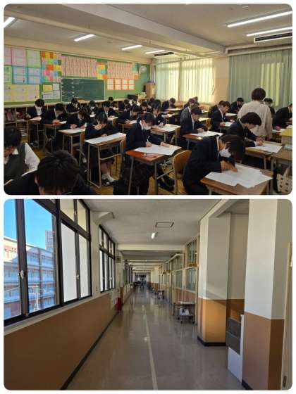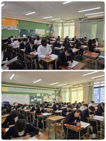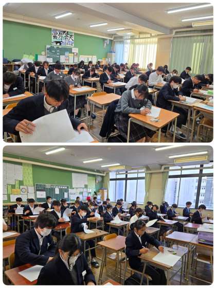 2年生は、国語、社会、技術・家庭科のテストを受けています。