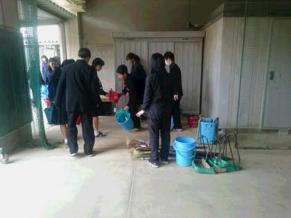 授業が終わり、4時限目は大清掃です。2学期の活動で使った普通教室、特別教室、トイレなど、班に分かれて、協力して掃除しています。