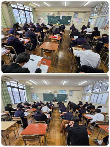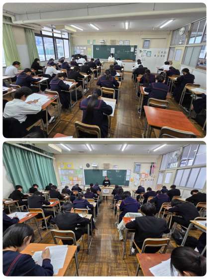 3年生は、英語、理科、美術のテストを受けました。期末テストは明日で最終日。最後までがんばりましょう。