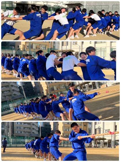 学年レクリエーションで綱引き大会を行いました。熱戦続きでしたが、見事、4組が優勝しました。どのクラスも大変盛り上がり、またひとつ、クラスのいい思い出が増やすことができましたね。
