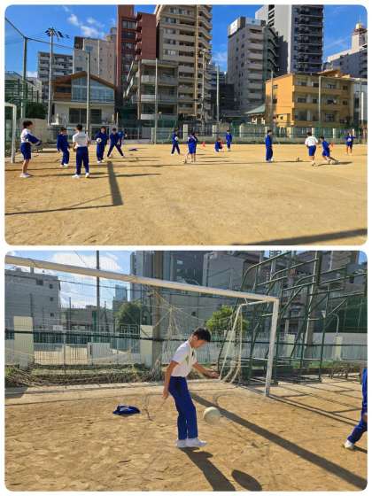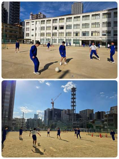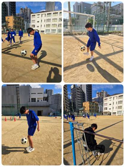 サッカーをしています。リフティングチームは、最高記録を競っています。サッカー部の生徒はさすがのうまさです。