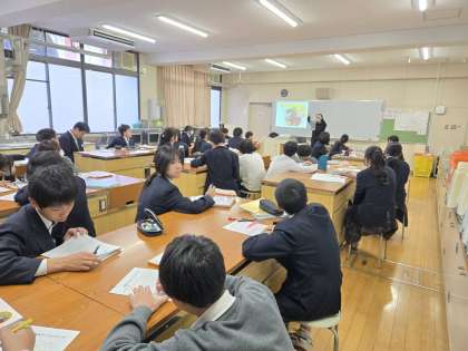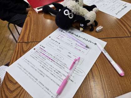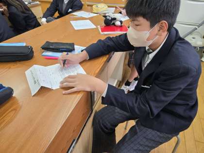 ハンバーグの作り方を習っています。先生秘伝のレシピです。冬休みに作ってみましょう。
